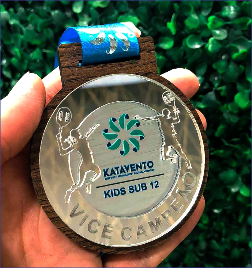 Medalha em MDF 6mm com impressão u.v e acrílico espelhado.